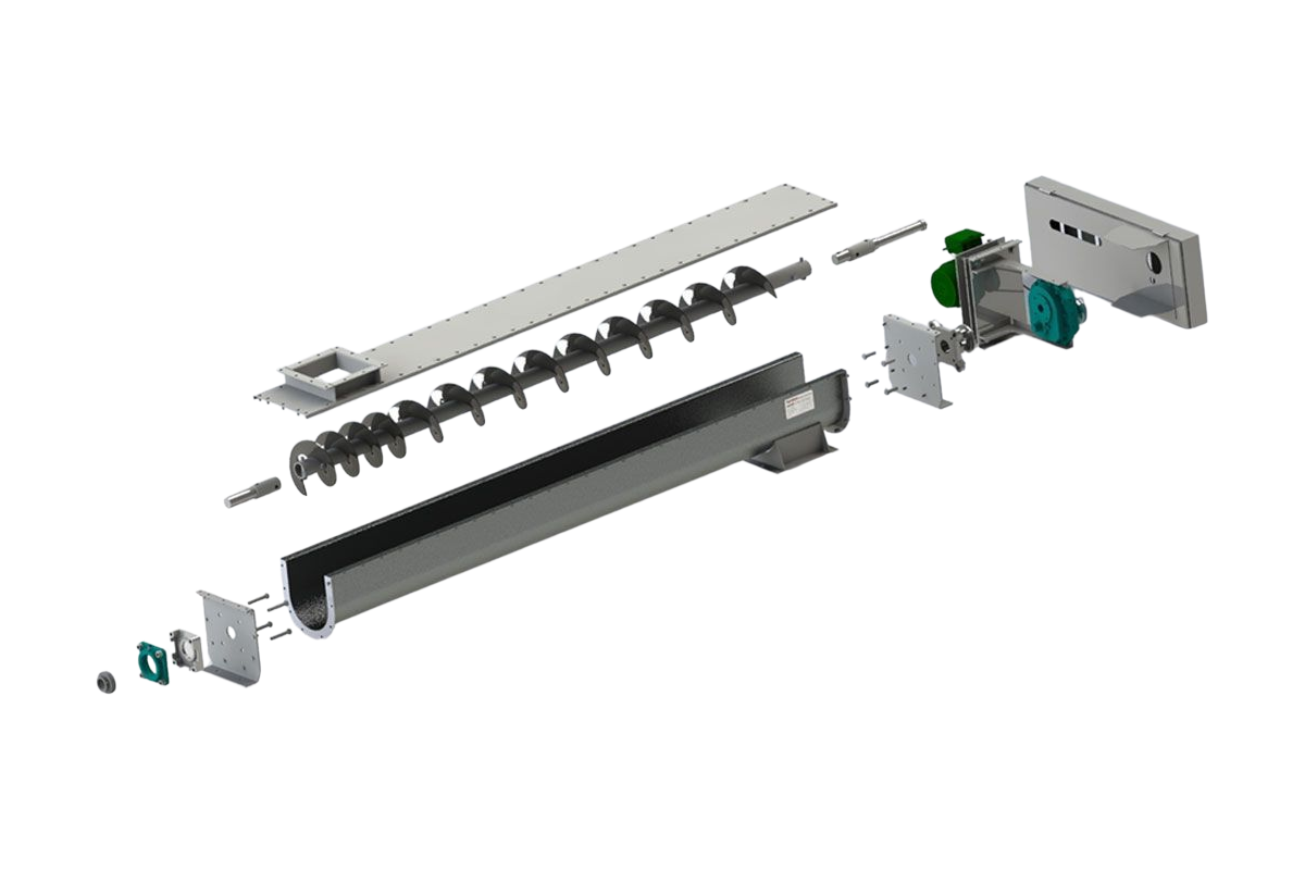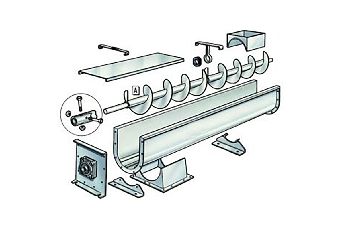 Complete range of troughs, shafts, hangers, and drives for any screw conveyor setup.